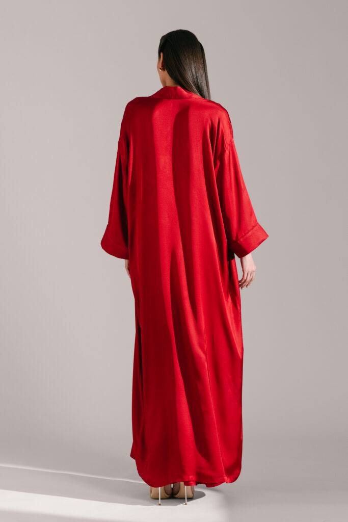 A subtle open back allows the dress to be worn on its own or styled with the robe for a more elevated look.
