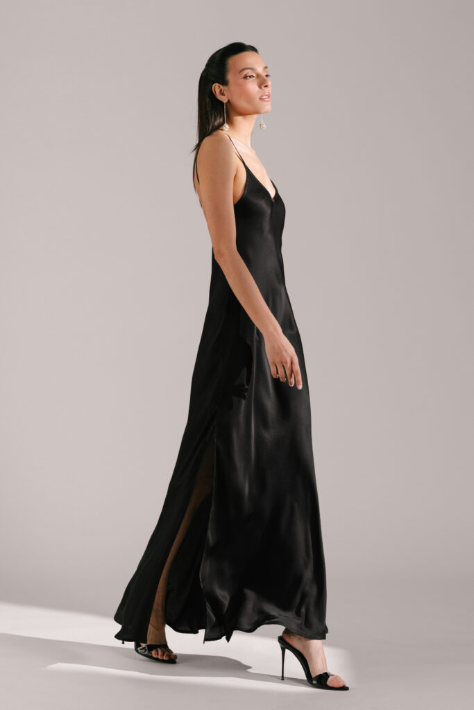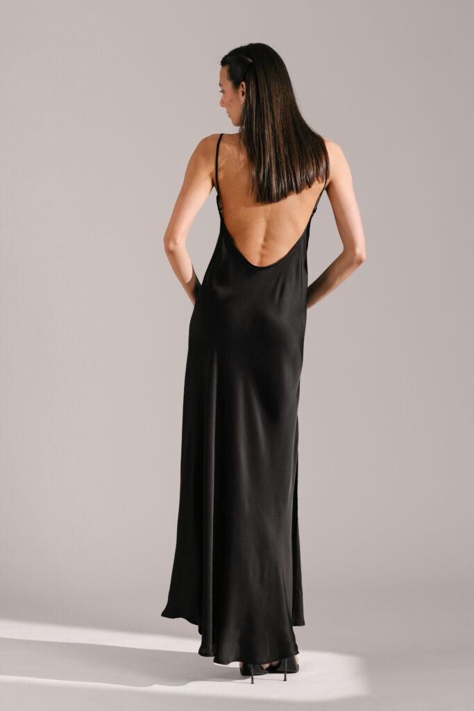 A subtle open back allows the dress to be worn on its own or styled with the robe for a more elevated look.
