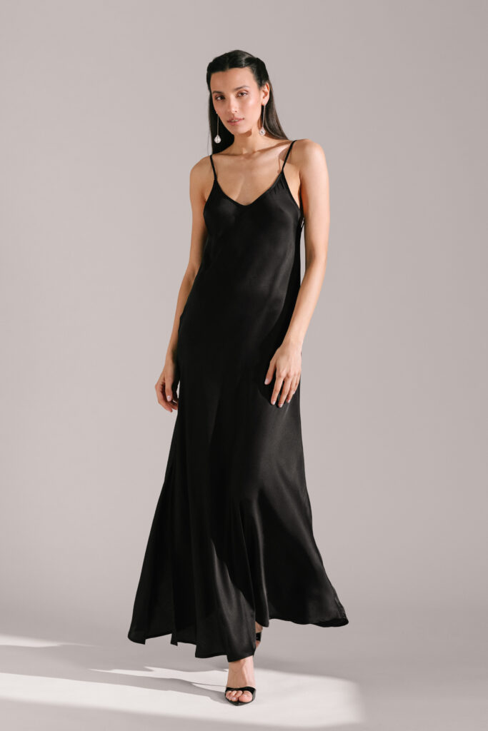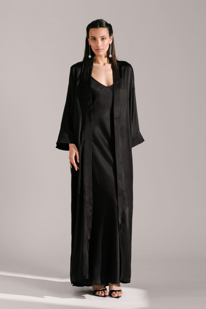 The Diana set combines a minimal slip dress with a relaxed robe.