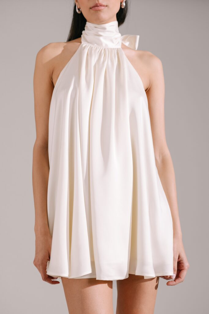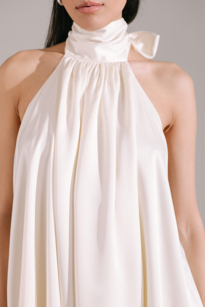 Our Vera dress is designed with long ties that can be styled in multiple ways, creating different looks.
